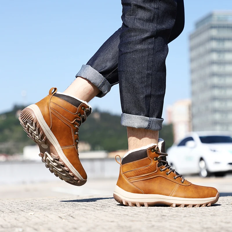 CORK Men Boots Men Winter Shoes Plus Size 39-48 Warm Ankle Botas Hombre For Leather Winter Boots Fo
