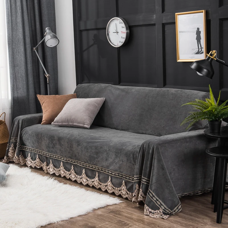 Best European Style Plush Sofa Cover For Living Room Luxury Grey Slipcovers Stretch Furniture Sectional