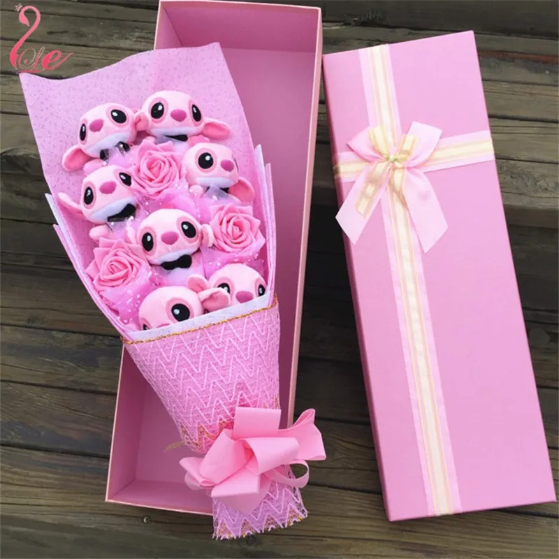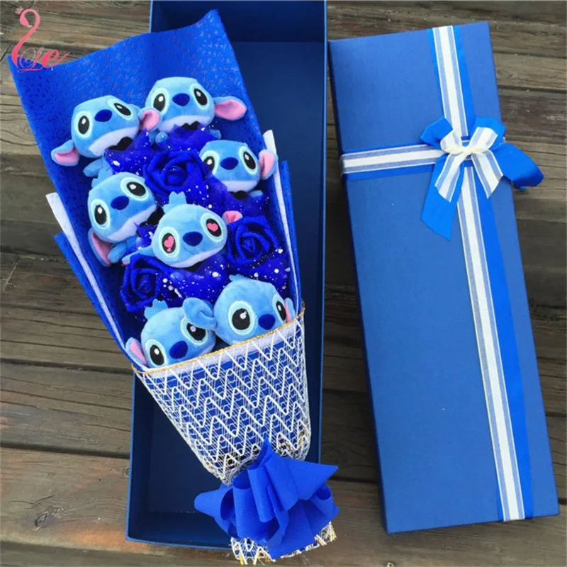 kawaii Artificial blue Stich Plush Toy favors Stitch fall Flowers bouquets for Valentine's Day weed