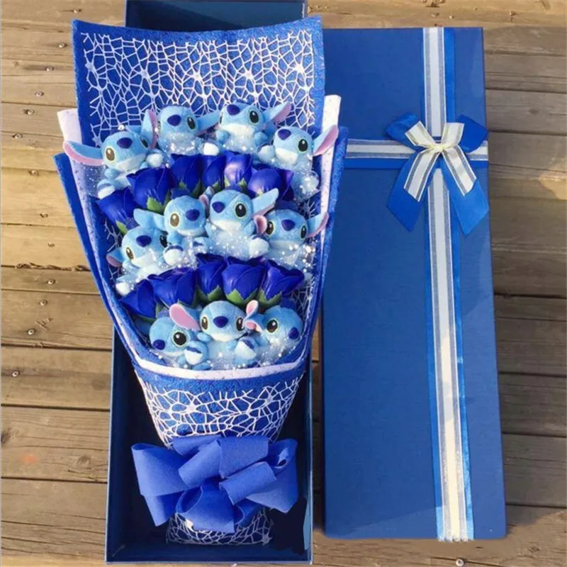HIGH QUALITY kawaii Artificial blue Stich Plush Toy favors Stitch fall Flowers bouquets for Valentine's Day weed
