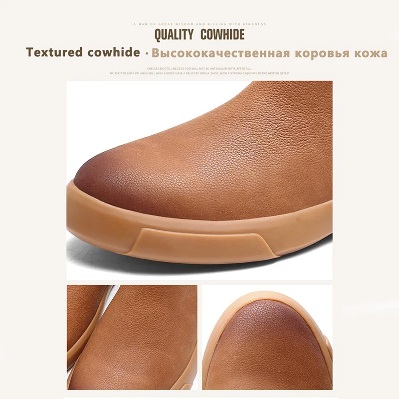 KATESEN Autumn Winter plush warm genuine leather men boots all season work shoes man ankle boot wit