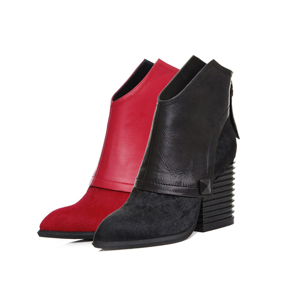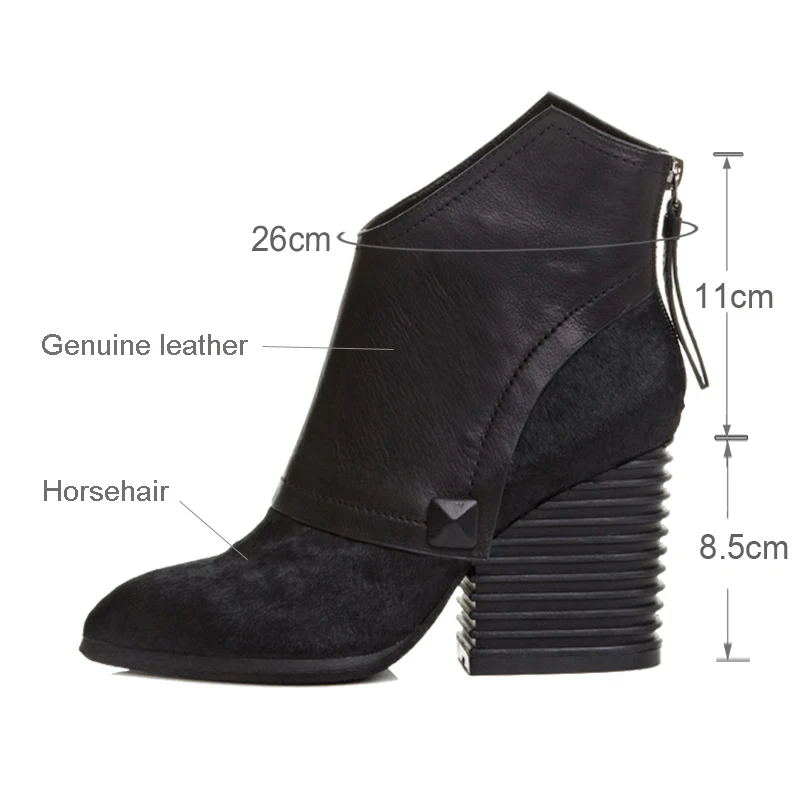 Woman Boots with Heels Winter Ankle Boots Pointed Toe Zipper Boots Black High heeled Chunky Heel An