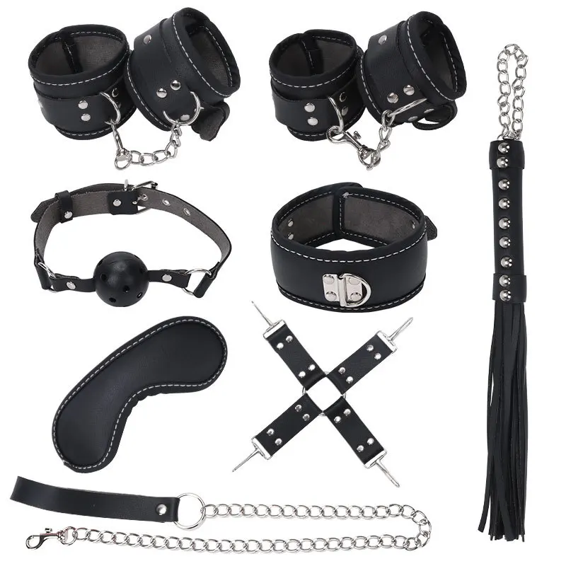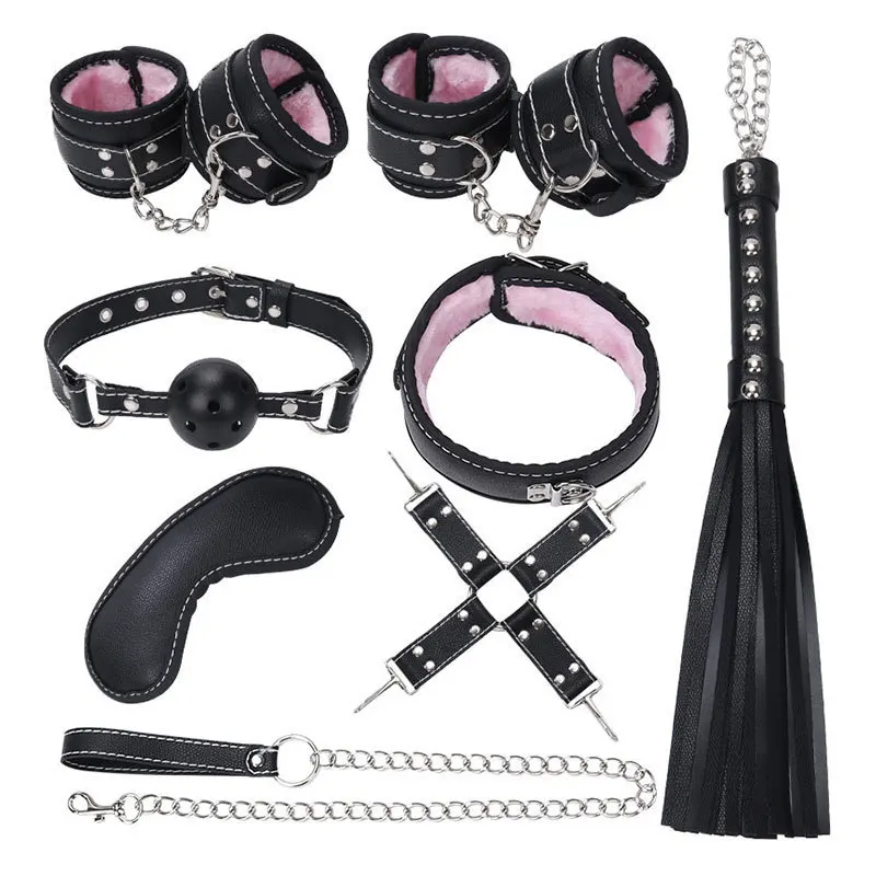 HOT Sale Sexy 8-piece strap plush handcuffs tied tied to leather whip husband and wife sex supplies OEM