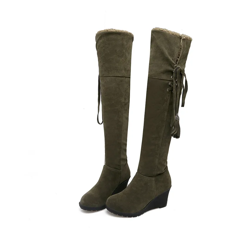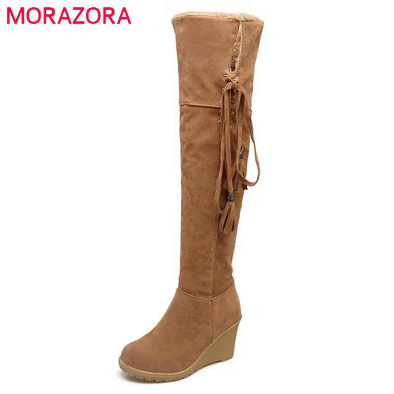 MORAZORA 2019 new arrival over the knee boots women flock round toe winter boots comfortable wedges