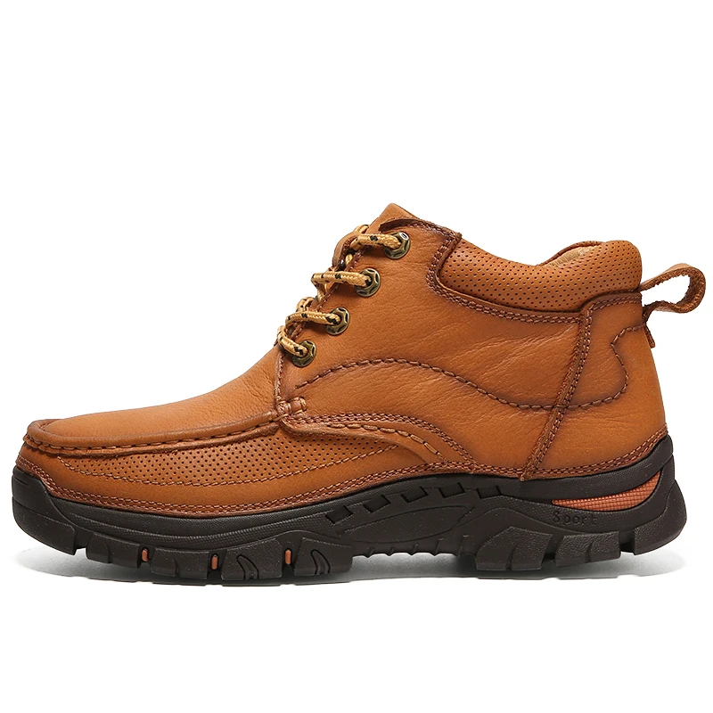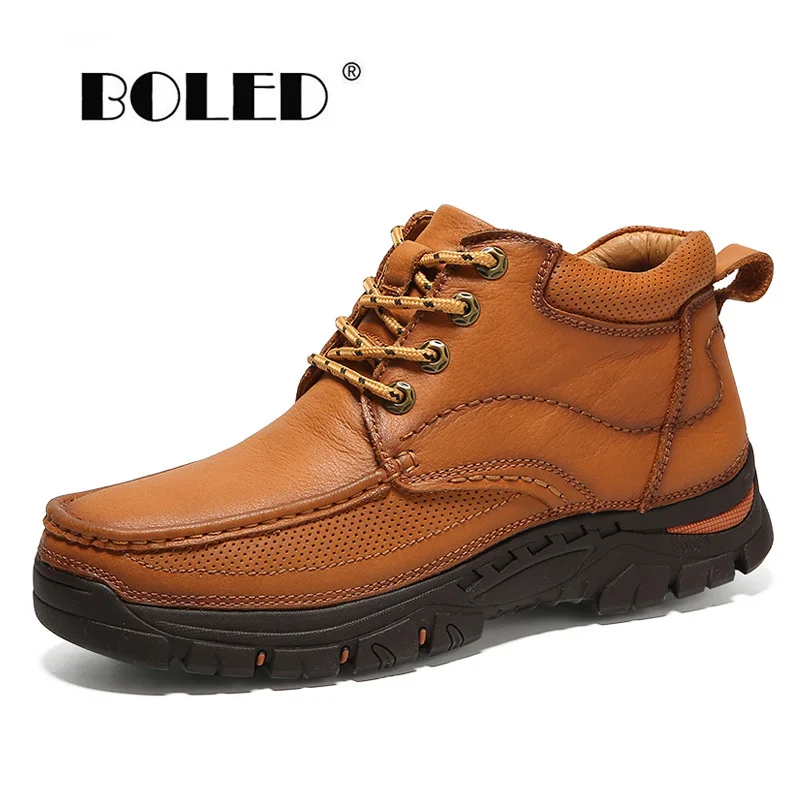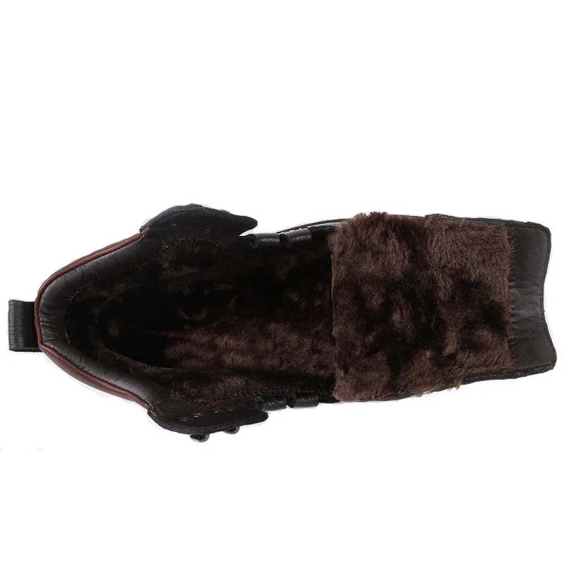 Natural Cow Leather Men Boots Warm Lace-Up Waterproof Winter Shoes Retro Style Ankle Snow Boots Sho