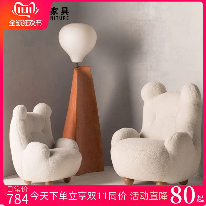 White Bear Cute Plush Single Person Little Children Sofa Soft Comfortable Kids Sofa Bean Bag Zitzak