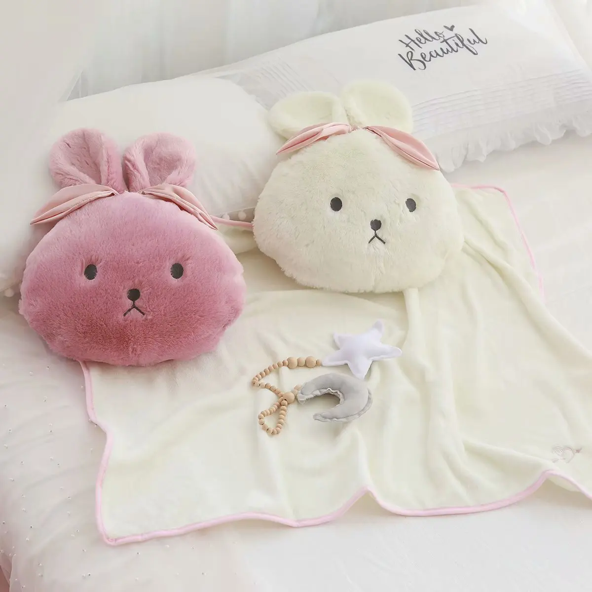 BEST 1pc cute plush toy A blanket in the pillow bowknot rabbit round pillow soft stuffed cushion blanket