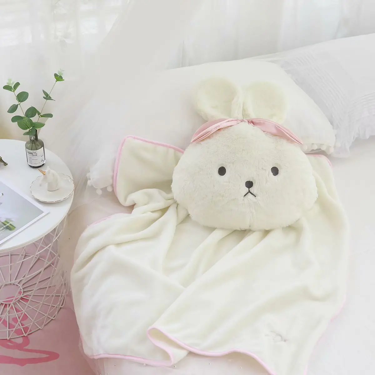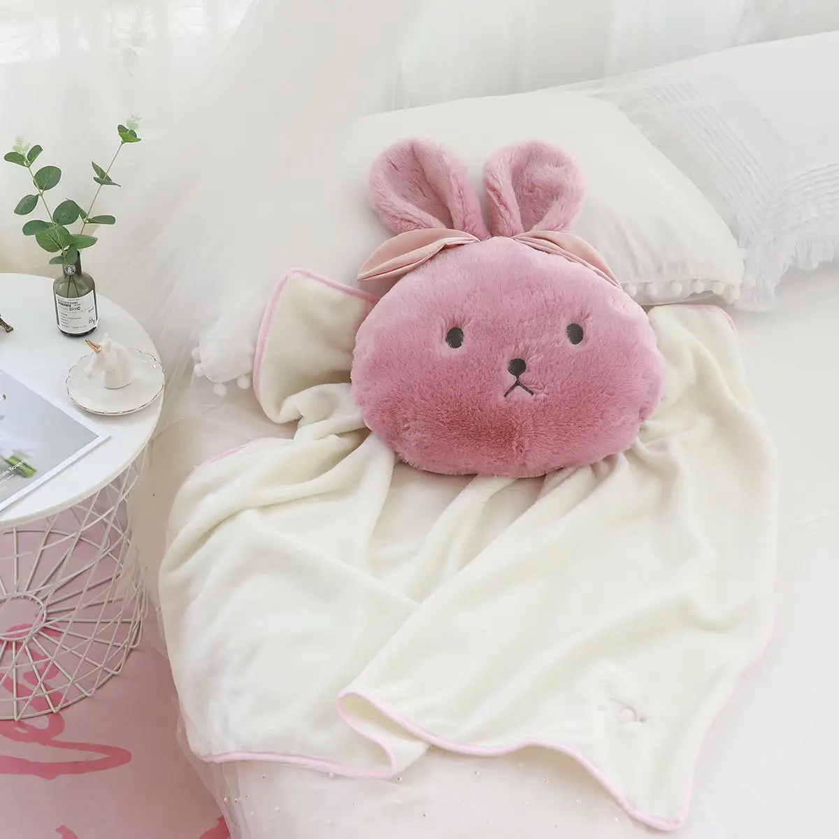 1pc cute plush toy A blanket in the pillow bowknot rabbit round pillow soft stuffed cushion blanket
