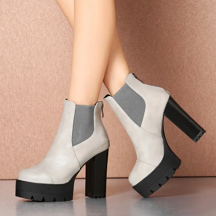 leather boots for women fashion punk ankle boots high heels shoes platform womens boots hjm89