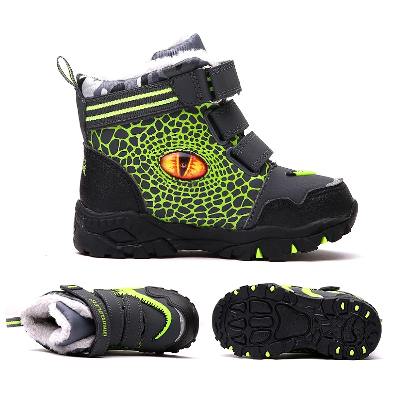 Dinoskulls Boys Boots Light Up Fleece Kids Snow Boots 3D Dinosaur LED Sport Children Shoes Waterpro